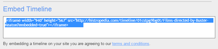 All that's left to do is paste the code snippet into you blog where you want the timeline to appear, below is an example of an embedded timeline for films directed by Buster Keaton
